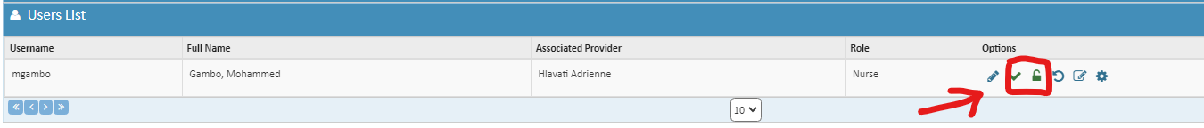 If user just needs account unlocked, click on the red check mark and red lock to unlock and reactivate account. (in screenshot they are green because the account isn’t locked out or deactivated)