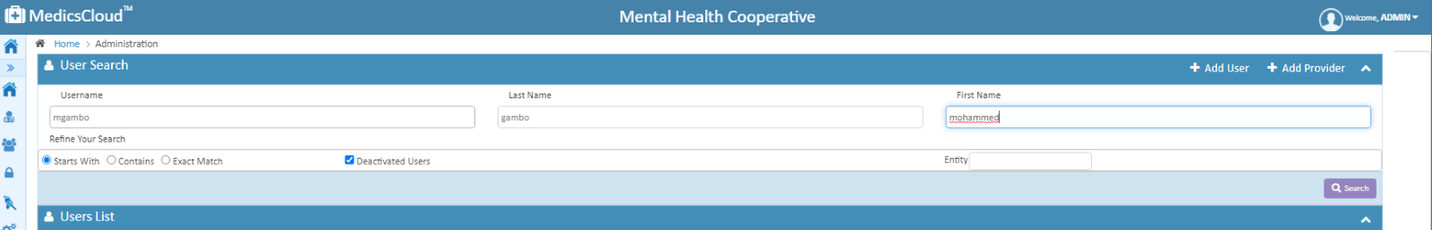 Search for user by expanding the User Search window