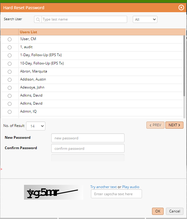 Select Hard Password Reset from the Favorites